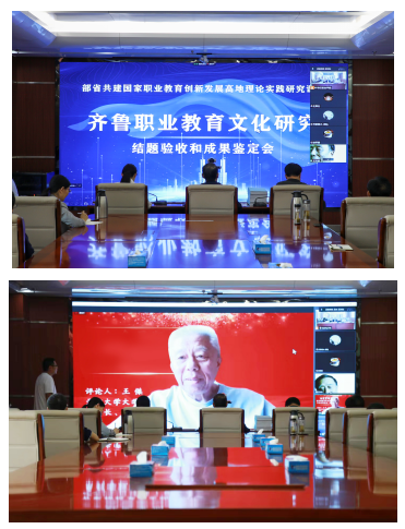 《齊魯職業(yè)教育文化研究》項(xiàng)目是由棗莊職業(yè)學(xué)院牽頭,聯(lián)合天津職業(yè)技術(shù)師范大學(xué)、威海海洋職業(yè)學(xué)院共同完成。此次會議采取線上線下結(jié)合的方式召開,分為成果公開報(bào)告會、結(jié)題驗(yàn)收和成果鑒定會兩個(gè)階段進(jìn)行。副院長張藍(lán)兮主持會議。