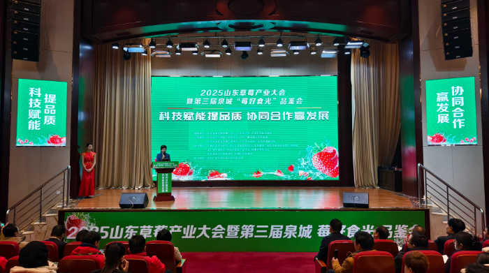 2025年1月10日至11日,由山東農(nóng)學(xué)會草莓專業(yè)委員會、山東廣播電視臺農(nóng)科頻道、濟(jì)南市農(nóng)業(yè)技術(shù)推廣服務(wù)中心共同主辦的2025年山東草莓產(chǎn)業(yè)大會暨第三屆中國•泉城“莓好食光”品鑒會在濟(jì)南召開。本次大會以“科技賦能提品質(zhì) 協(xié)同合作贏發(fā)展”為主題,旨在搭建草莓生產(chǎn)全產(chǎn)業(yè)鏈的交流與交易平臺,探討草莓產(chǎn)業(yè)前沿品種、技術(shù)及市場發(fā)展趨勢。山東省農(nóng)業(yè)農(nóng)村廳黨組成員、副廳長楊武杰、濟(jì)南市農(nóng)業(yè)農(nóng)村局黨組書記、局長孟帥、山東農(nóng)學(xué)會秘書長張希軍等出席了會議。來自全國各地的草莓專業(yè)合作社、種植基地、采購企業(yè)、農(nóng)資及設(shè)施企業(yè)負(fù)責(zé)人等300余人參加了此次盛會。