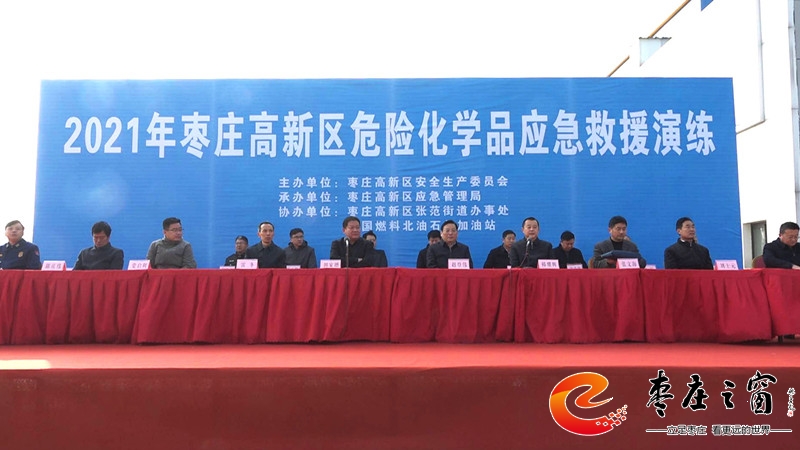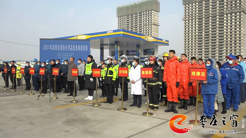 11月30日上午,棗莊高新區(qū)在張范街道北油石化加油站舉行2021年危險(xiǎn)化學(xué)品應(yīng)急救援演練。