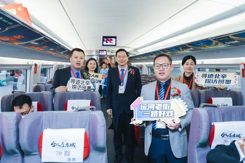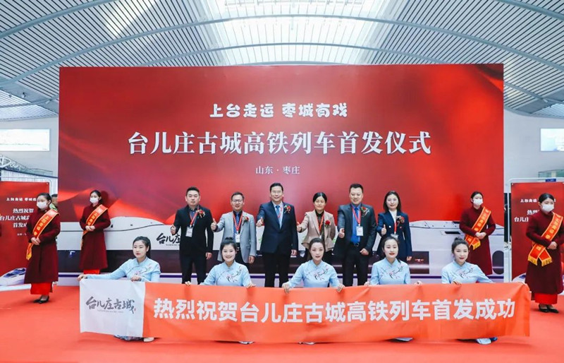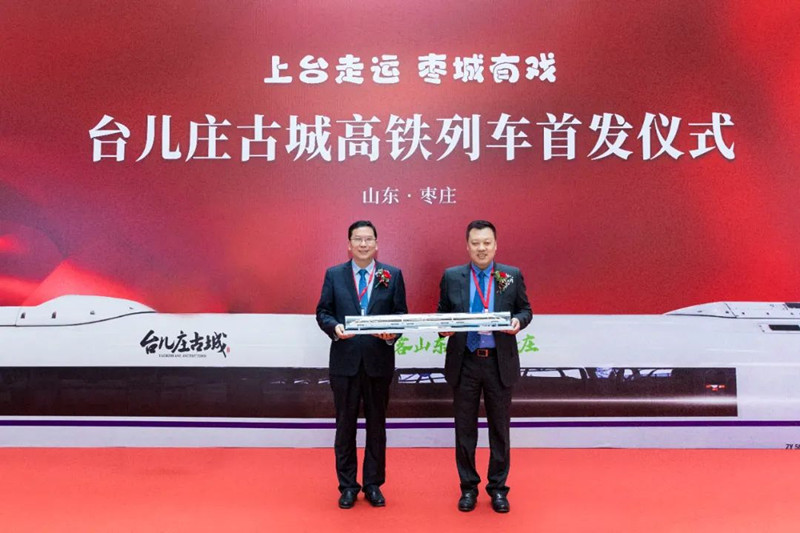 隨后,出席嘉賓共同為“臺(tái)兒莊古城”高鐵冠名專(zhuān)列首發(fā)啟程進(jìn)行剪彩并互贈(zèng)紀(jì)念品。